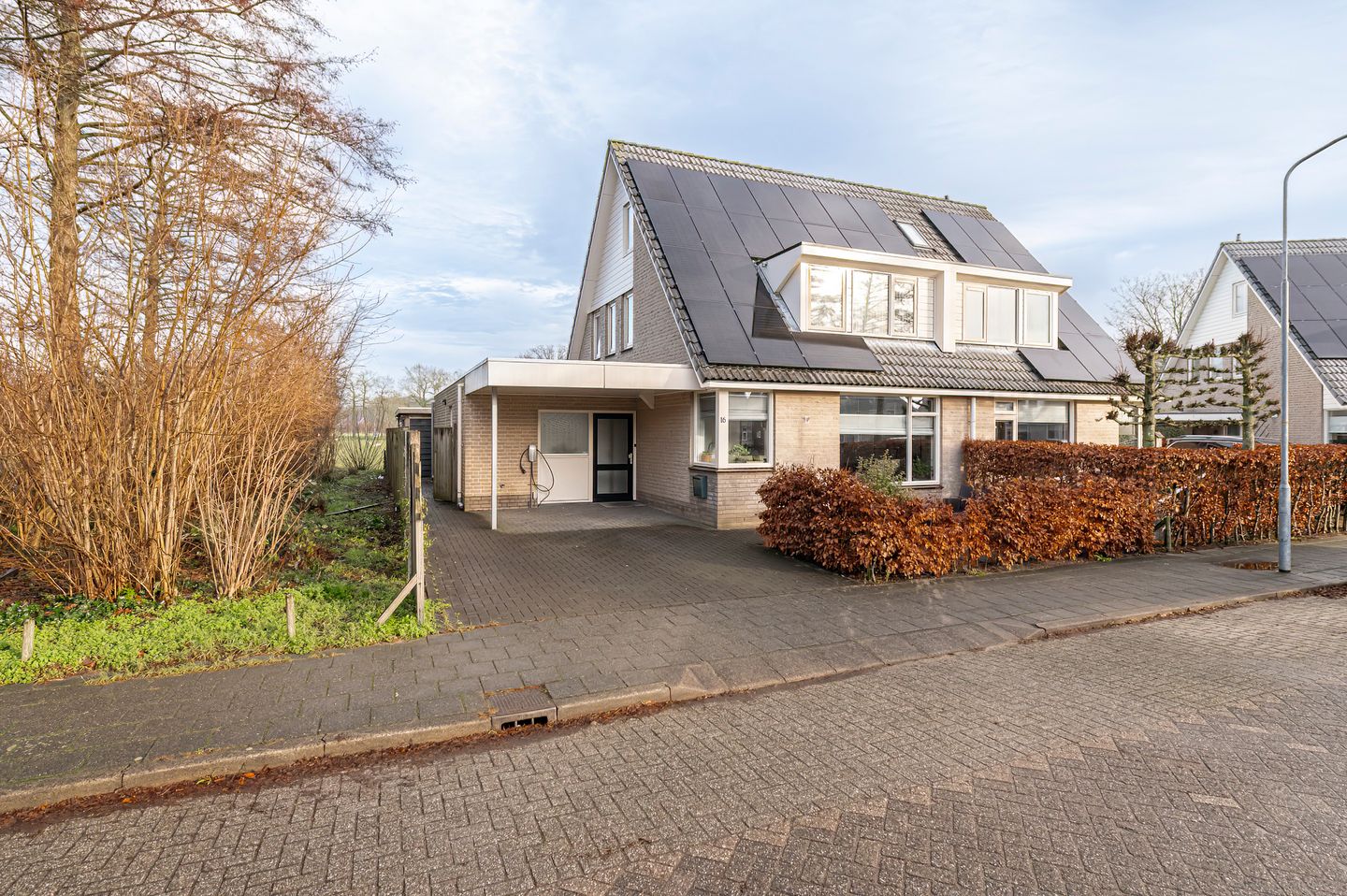 De woning is aan de voor- en zijkant omgeven door een groen plantsoen en aan de achterzijde grenzend aan beschermd agrarisch dorpsgebied. Dit garandeert rust, privacy en een fraai, panoramisch uitzicht vanuit de vernieuwde achterpui.