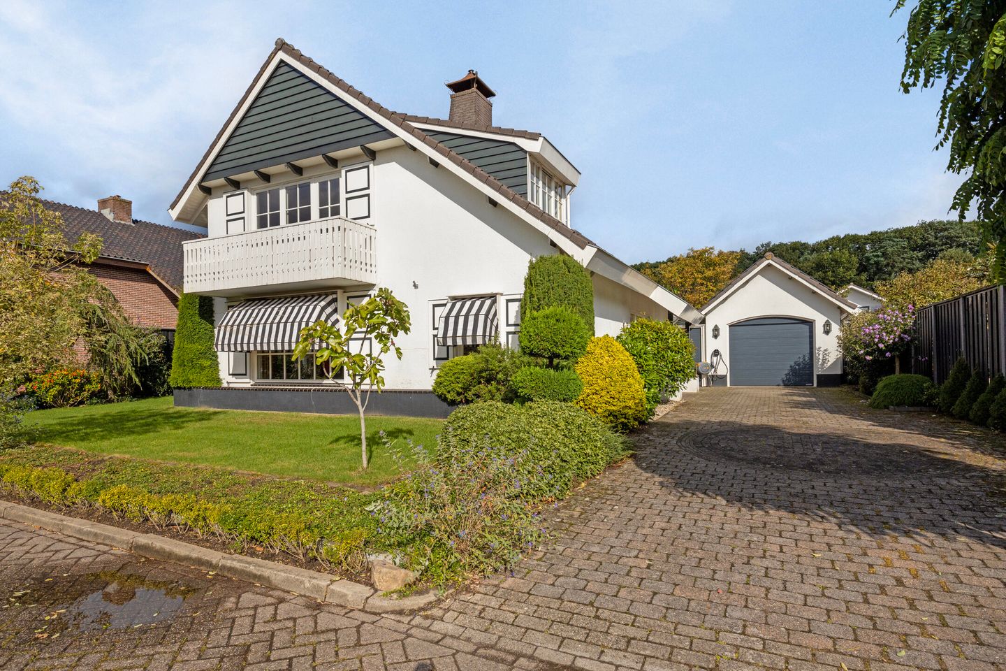 Deze woning staat op een royaal perceel van 536 m², omringd door een heerlijke tuin. Aan de voorzijde beschik je over een fraai aangelegde voortuin met een eigen oprit, waar je met gemak meerdere (elektrische) auto’s parkeert. Via de ruime oprit bereik je de vrijstaande stenen garage van 23 m², compleet met vliering en een extra berging aan de achterzijde. De riante achtertuin kent meerdere zonnige terrassen, biedt veel privacy en voor de kinderen is er genoeg ruimte om naar hartenlust te spelen. Of het nu gaat om ontspannen na een lange dag of het ontvangen van vrienden en familie, deze buitenruimte met veranda is een ware eyecatcher. Hier kun je optimaal genieten van het buitenleven tot in de late uurtjes.
