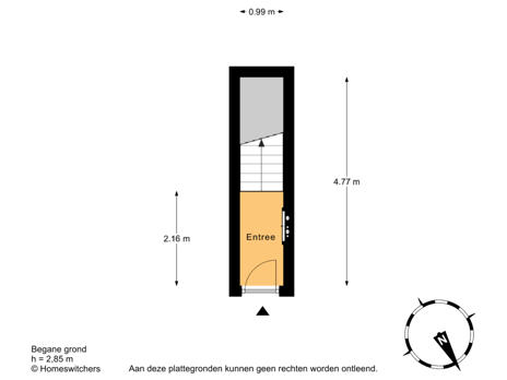 Begane grond: entree met meterkast en trapopgang naar de eerste verdieping.