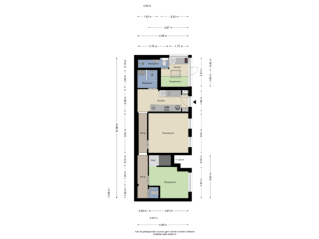Indeling: Julianalaan 2c te Delft. Kleine zelfstandige ruimte (verhuurd) met een eigen slaap-/woonvertrek, keuken, badkamer voorzien van een douche, wastafel en toilet.