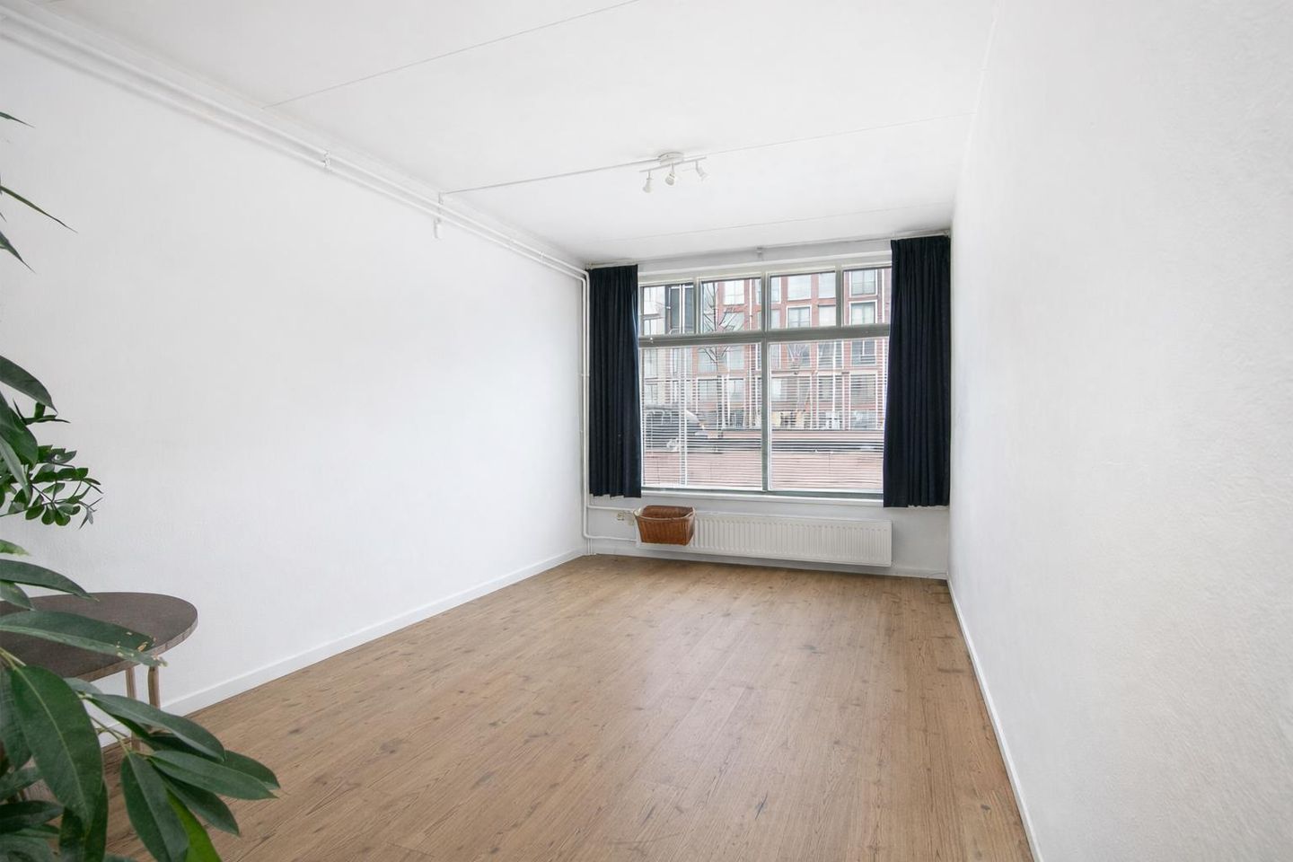 Lichte woon/slaapkamer (7.14 x 2.80m) met uitzicht richting het station.