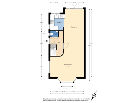 - 27 m² (3,80 meter diep en 7,20 meter breed)