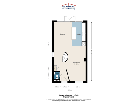 - 66 m² (9,30 meter diep en 7,15 meter breed)