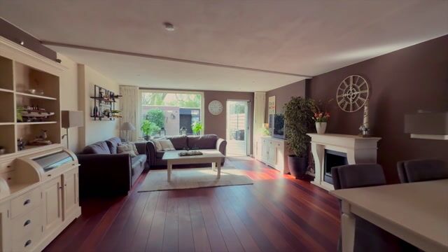 Bij binnenkomst proef je direct de zorg die de huidige eigenaren in de woning hebben gestoken. De woonkamer is in 2006 met 2,50 m. uitgebouwd en voorzien van een prachtige, massieve hardhouten Jatoba vloer.