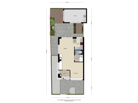 - 50 m² (7,70 meter diep en 6,54 meter breed)