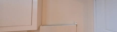 De slaapkamer aan de voorzijde heeft een vaste kast met opstelplaats van de cv en de wasmachine aansluiting.