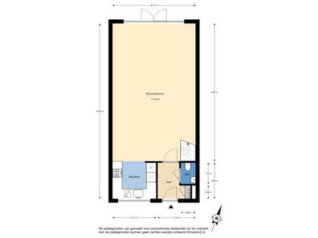 - 49 m² (9,20 meter diep en 5,30 meter breed)