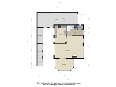 Begane grond: entree/hal, trapopgang, toilet en woonkamer met serre en keuken.