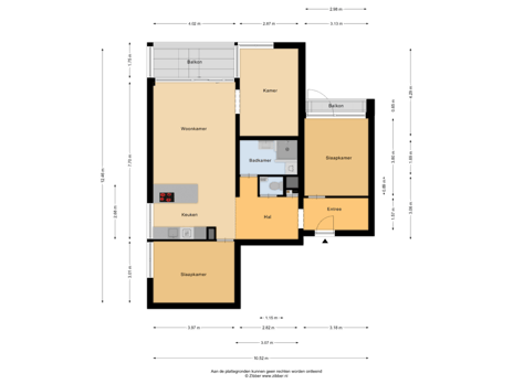 Via de gezamenlijke entree bereikt u het appartement op de tweede woonlaag. De hal vormt het centrale punt van de woning en biedt toegang tot vrijwel alle vertrekken. Vanuit de hal bereikt u tevens het separate toilet. De indeling is praktisch en overzichtelijk en zorgt voor een prettige doorloop naar de woon- en slaapvertrekken.