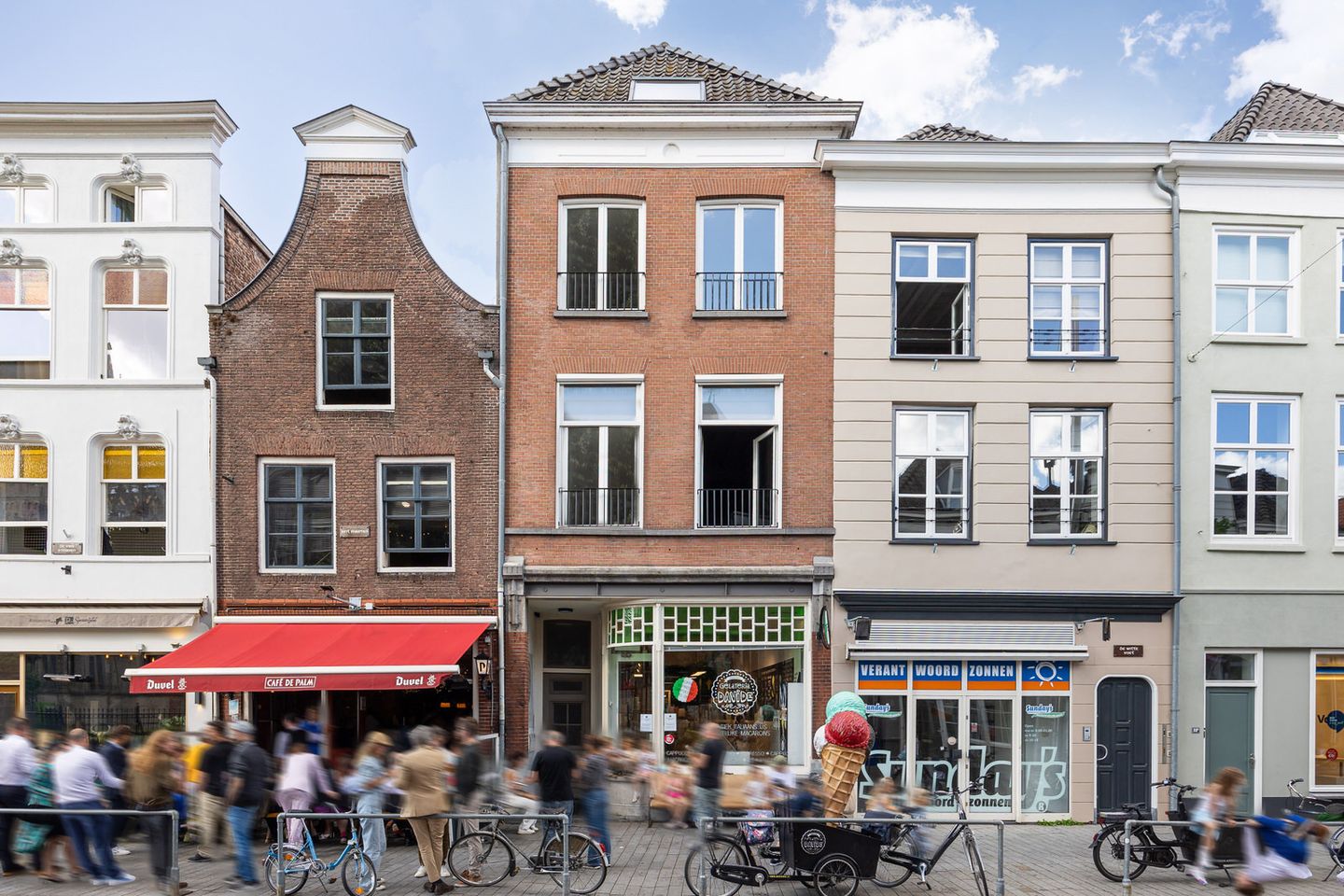 Op de eerste verdieping kom je in de woonkamer die door de ramen aan zowel de voor- als zijkant heel licht is en prettig aanvoelt. Het uitzicht op de kathedraal en de kerktuin met monumentale bomen is ronduit adembenemend. De strak afgewerkte muren, het gezellige houtkacheltje en de aanwezige vloerverwarming maken dit een heerlijke plek om thuis te komen. Door de openslaande ramen ontstaat een Frans balkon waar je lekker in de zon kunt zitten en genieten van het stadsleven dat zich onder jouw appartement voltrekt.