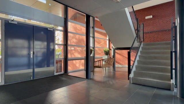 Via de afgesloten entree komen we in de centrale hal met liftinstallatie en een trap naar de verdiepingen en het souterrain met bergingen en toegang tot het afgesloten binnenterrein met eigen parkeerplaats.
