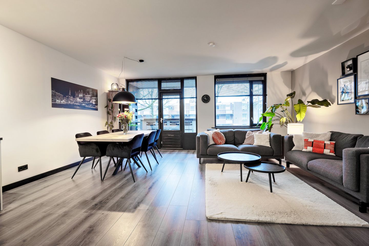Het appartement is modern afgewerkt met sfeervolle laminaatvloer en strakke wanden.