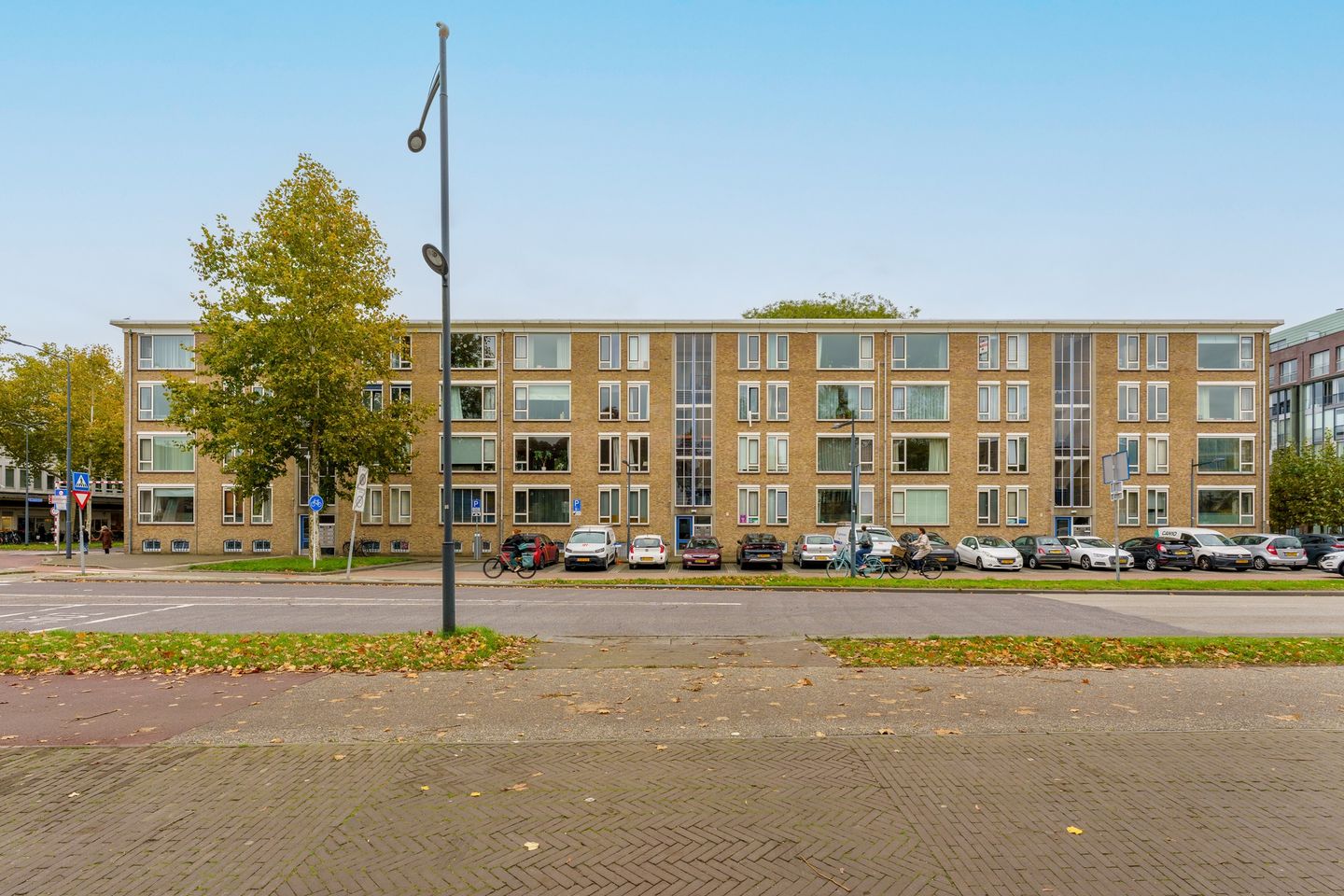 De woning ligt in een lichte en open omgeving, met veel bomen en brede zichtlijnen. Hier vindt u een fijne mix van moderne woon- en kantoorgebouwen. Vanaf het balkon heeft u een mooi uitzicht over het groen en de stad, met enkele architectonische accenten die het straatbeeld interessant maken.