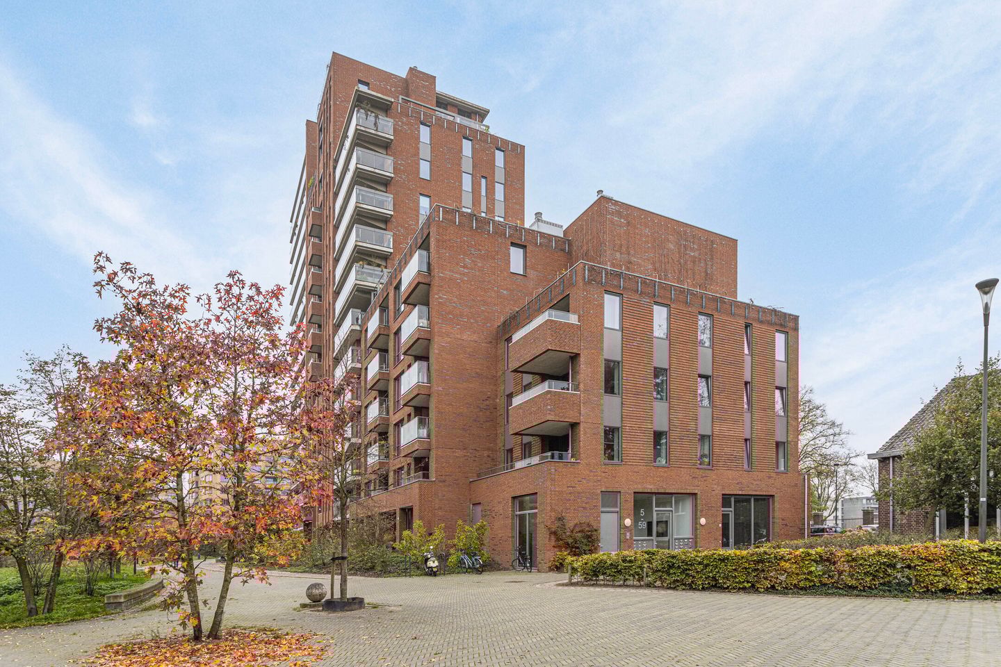 De woning is gelegen op de 6e etage. Indeling en comfort: bij binnenkomst in de hal met garderobe en gastentoilet voel je direct de hoogwaardige afwerking en luxe sfeer van dit appartement. Via een stijlvolle taatsdeur kom je in de royale woonkamer (circa 52 m²), die dankzij de grote raampartijen en het zuidelijk georiënteerde terras fijn licht is. Het extra grote terras van 30 m², deels overdekt en deels open, biedt volop ruimte om buiten te genieten, zowel in de zon als in de schaduw. Hier kun je heerlijk ontspannen en genieten van het weidse uitzicht.