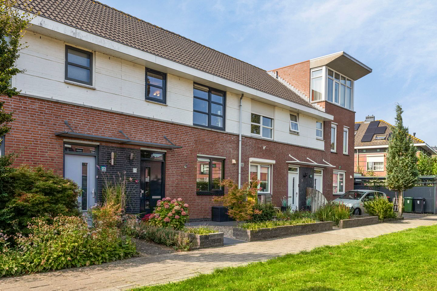 De diepe tuin is keurig verzorgd en voorzien van sierbestrating, een brede elektrische zonneluifel, en prachtige, groene borders met gevarieerde beplanting. Achterin de tuin bevindt zich een tweede, gezellig terras, een houten berging met elektra en een achterom naar de brandgang. Door de diepte van de tuin en de gunstige ligging op het zuidwesten, kun je hier van heel wat zonne-uurtjes genieten.
