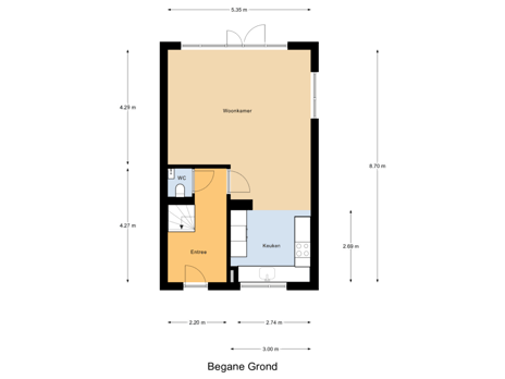 - 39 m² (5,50 meter diep en 7,00 meter breed)