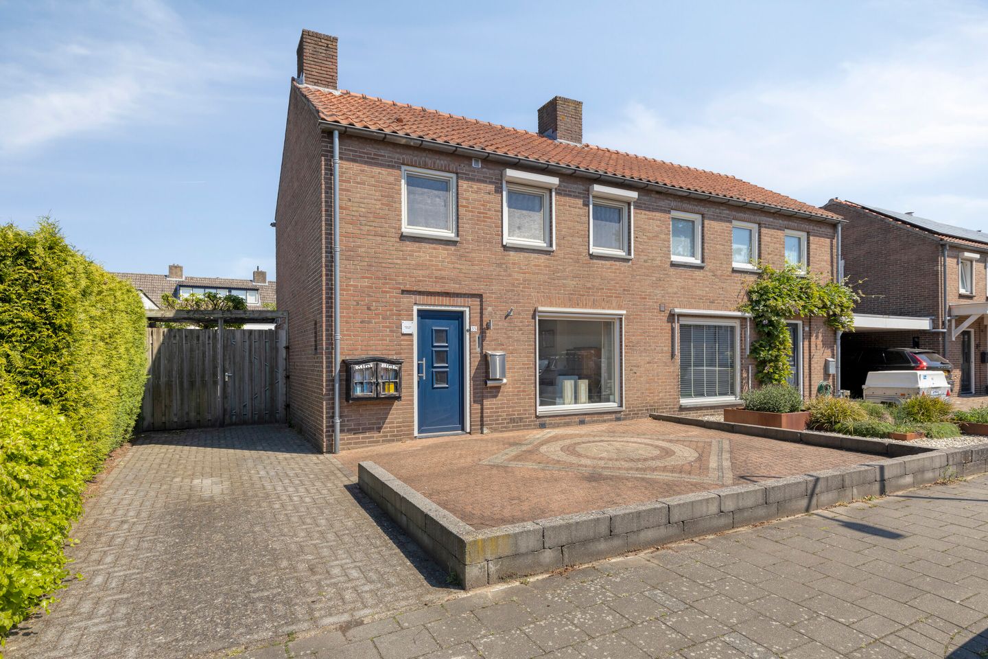 Via een poort aan de zijkant van de woning kom je naar de oprit aan de voorzijde. De voortuin is onderhoudsvriendelijk ingericht met sierbestrating.