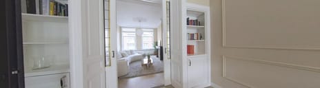 De ruime woonkamer en suite is een echte eyecatcher: het plafond van 3,14 meter hoogte met fraaie details en ornamenten geeft de ruimte een statige, bijna monumentale uitstraling. De combinatie van klassieke details en een moderne afwerking zorgt voor een perfect evenwicht tussen charme en eigentijds wooncomfort.