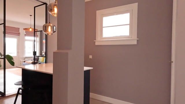 De hoge plafonds, grote raampartijen en vaste kasten benadrukken het karakter van het gebouw, terwijl het geheel tegelijkertijd een rustige, heldere en functionele uitstraling behoudt.