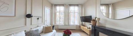 Met behoud van veel originele details, een goed onderhouden en zo te betrekken 4-kamer appartement op de 1e verdieping gelegen voorzien van woonkamer en suite met open keuken, 2 slaapkamers, moderne badkamer en een zonnig achterbalkon. Energielabel B.