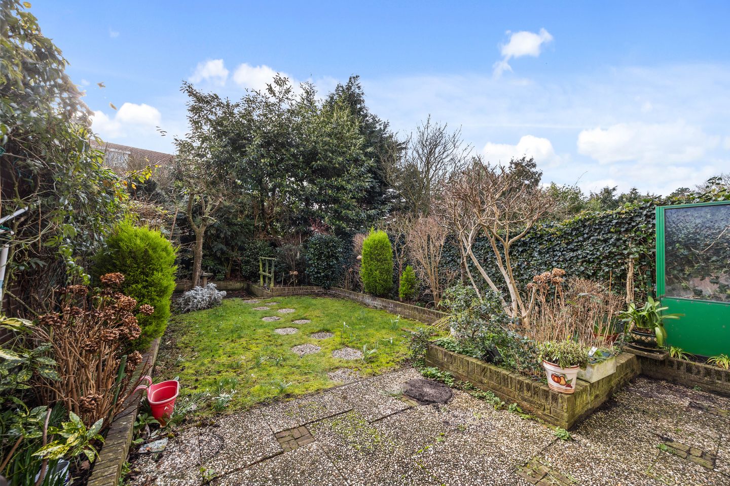 - Zonnige achtertuin (ZO) van circa 15 meter diep met stenen berging en houten berging;