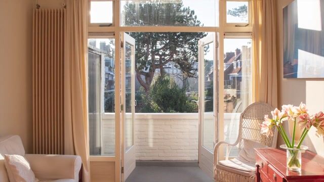 Prachtig (met behoud van veel authentieke elementen), vrij gelegen 3 laags 6 kamer bovenwoning met 3 toiletten, 2 badkamers, 2 zonnige balkons en berging op de begane grond. De Vereniging van Eigenaren heeft vrijwel het geheel groot onderhoud uitgevoerd.