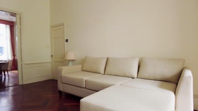 Upon entering the elegant entrance hall, you are greeted by a marble floor, separate toilet, and a practical closet. The generous living and dining room, separated by ensuite doors, boasts refined ornamental ceilings and a herringbone parquet floor with trim. The original black fireplace in both the front and back rooms adds historical charm. The back room offers access to the sunny city garden through French doors. The modern, new kitchen is equipped with high-end AEG built-in appliances. On the ground floor, there are two bedrooms, one of which has French doors to the garden. The first bathroom features a walk-in shower, toilet, and double sink. The second bathroom, accessible via the landing, has a bathtub, walk-in shower, toilet, double sink, and washing machine connection. The third bedroom, ensuite and equipped with air conditioning, has direct access to this bathroom. The sunny city garden with storage provides a serene outdoor space for relaxation.