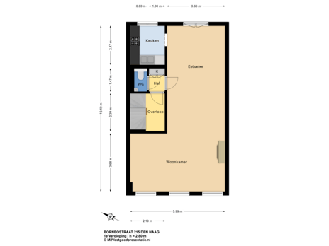 Via een eigen entree aan de Borneostraat stapt u de hal binnen, waar zich de meterkast bevindt en de trap naar de eerste verdieping begint.