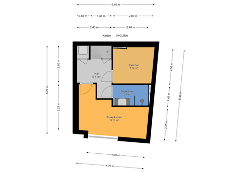 - 7 m² (2,29 meter diep en 3,08 meter breed)
