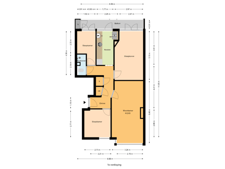 Bij binnenkomst komt u via een portiek in een centrale hal met een meterkast (3 groepen) en een praktische vaste kast. De woonkamer aan de voorzijde van het appartement is licht en sfeervol. Ook aan de voorzijde is een ruime slaapkamer gelegen. Aan de achterzijde van het appartement bevindt zich de royale masterbedroom, die beschikt over openslaande deuren naar een balkon dat de volledige breedte van het appartement beslaat. Ook de functionele keuken is aan de achterzijde gelegen, voorzien van een gaskookplaat en opstelplaats voor een wasdroger. De rechte opstelling biedt voldoende opbergruimte in zowel de boven- als onderkasten, koel-/vriescombinatie en opstelplaats voor een cv-ketel (Nefit 2020). De keuken biedt tevens toegang tot het balkon.