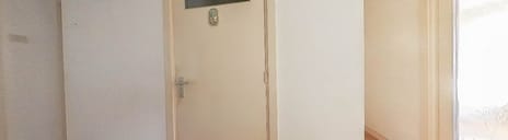 Entree woning op de eerste etage via portiektrap; voordeur met hal, separaat toilet, meterkast en vaste kasten.