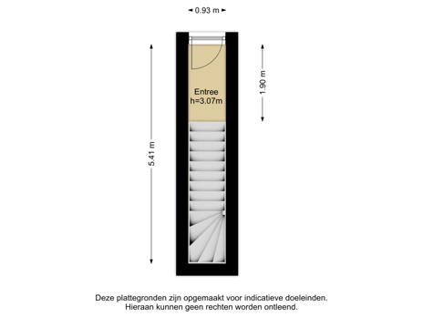 Entree op de bel-etage via bordestrap; binnentrap naar de 1e etage.