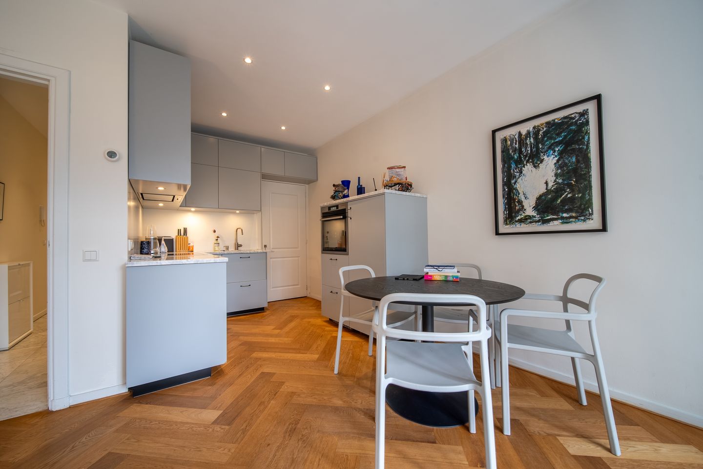 -Hoogwaardig breed eiken visgraat parketvloer door het hele appartement;
