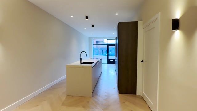 De keuken is een echte eyecatcher met een elegant keramieken werkblad en kastjes in een harmonieuze mix van walnoot en beige. Het ruime kookeiland vormt het hart van de keuken en maakt van deze ruimte een echte leefkeuken. De keuken is uitgerust met luxe Siemens-apparatuur: een wijnkoelkast, koelkast, vaatwasser, combi-oven, kookplaat met geïntegreerde afzuiging, een stijlvolle zwarte spoelbak en een moderne cooker-kraan. De volledig vernieuwde groepenkast is netjes weggewerkt, waardoor het geheel een strakke en verzorgde uitstraling behoudt.
