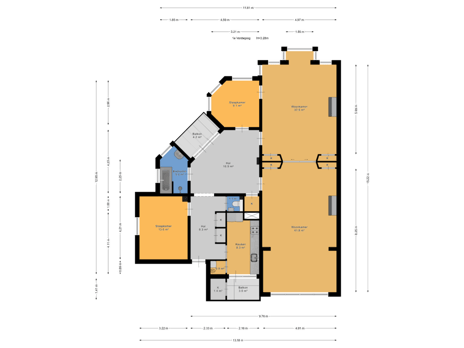 - Woonkamer heeft een breedte van 4.98 m en een lengte van 15.20 m