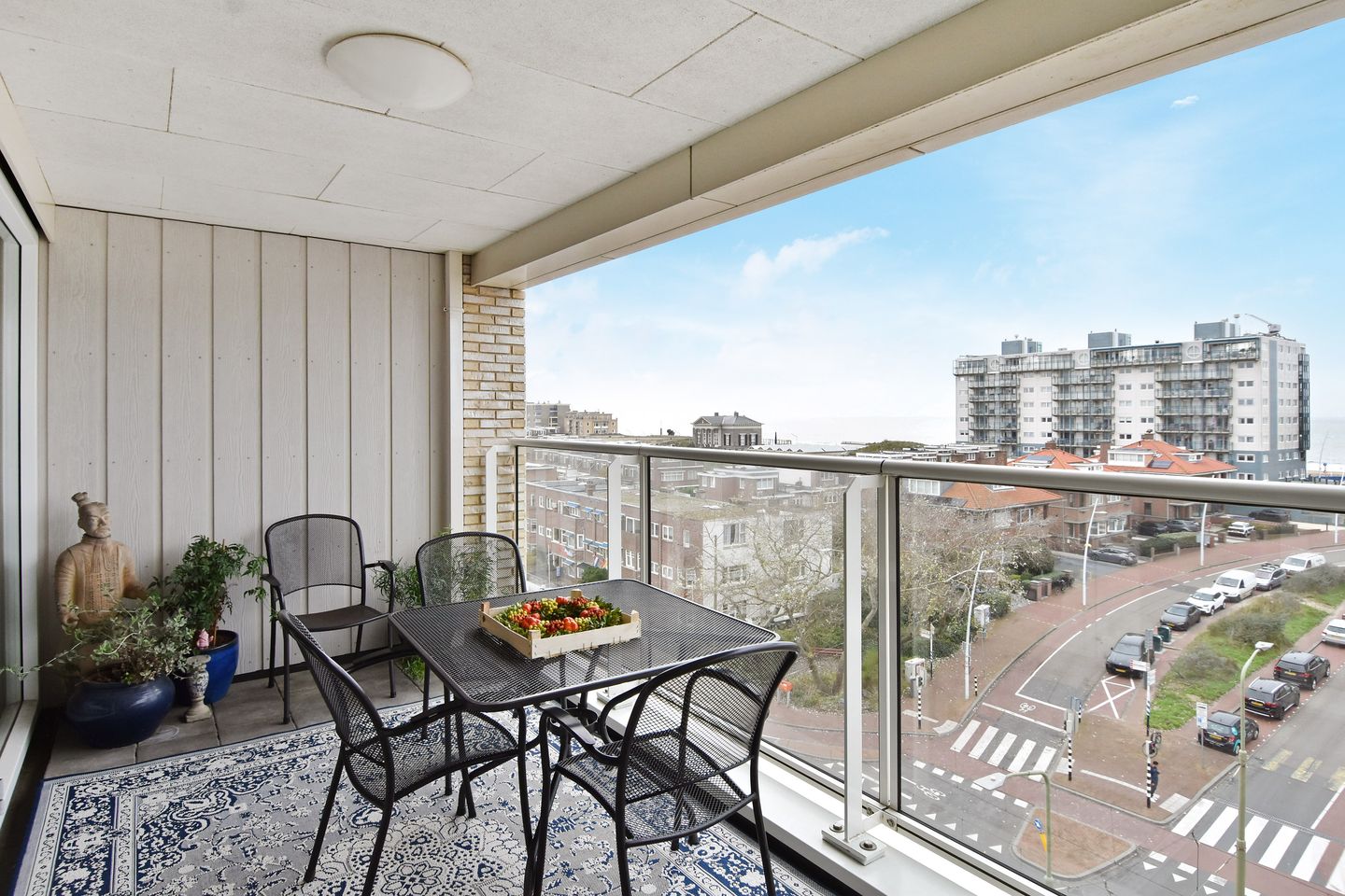 Gemeenschappelijke afgesloten centrale entree met videofoonsysteem, brievenbus- en deurbellen tableau; lift/ trappenhuis naar de 5e etage; entree woning; gang; modern zwevend toilet met fontein; woon-/eetkamer voorzien van Frans balkon met openslaande deuren en een deur voor toegang tot de loggia/terras (ca. 4.64 x 2.09) met schitterend uitzicht over zee en stad; moderne open keuken in L-opstelling voorzien van vaatwasser, koel-/vries combinatie, combi-oven, inductie kookplaat en afzuigkap; moderne hoog opgetegelde badkamer (ca. 4.14 x 1.84) voorzien van inloopdouche, dubbele wastafel en handdoekradiator; ruime bergkast voorzien van wasmachine aansluiting en opstelling CV combi- ketel. Slaapkamer I (ca. 4.85 x 3.70) en slaapkamer II (ca. 3.12 x 2.22) bevinden zich aan de voorzijde van het appartement, hebben zeezicht en geven toegang tot het royale balkon.