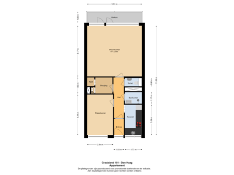 The measurement instruction is based on NEN 2580 and is intended to measure the usable floor area in a uniform manner. Differences in measurement outcomes may nevertheless occur due to differences in interpretation, rounding or limitations during the measurement.
