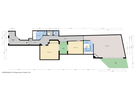 - 18 m² (6,96 meter diep en 2,53 meter breed)
