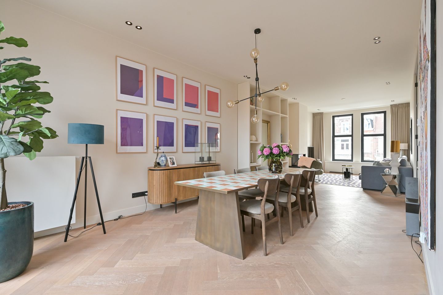 Woonkamer - Hoge plafonds, grote ramen en een zee van daglicht zorgen voor een open en ruimtelijk gevoel. Openslaande deuren naar het balkon maken deze verdieping compleet.