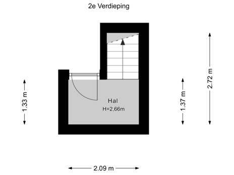 2e Verdieping: entree, hal met trap naar 3e verdieping.