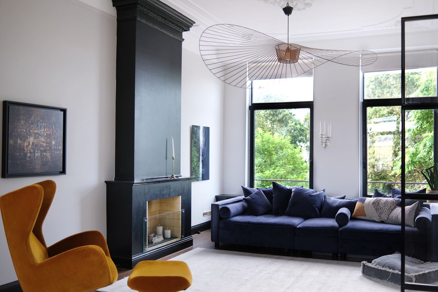 - Originele stijlkenmerken zoals ornamenten plafonds en zwart stalen kozijnen zijn behouden.