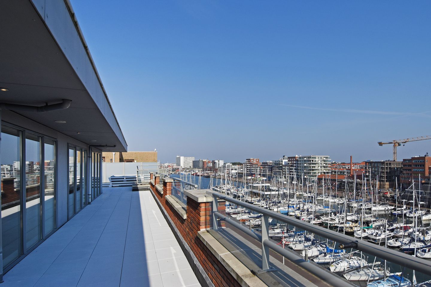 The roof terrace offers an unparalleled outdoor experience. On the southeast side you look out over the second inner harbor of Scheveningen, where luxury sailing yachts sail back and forth. Here you can enjoy the sun and the beautiful view of the skyline of The Hague, the dunes and the sea with a glass of wine.