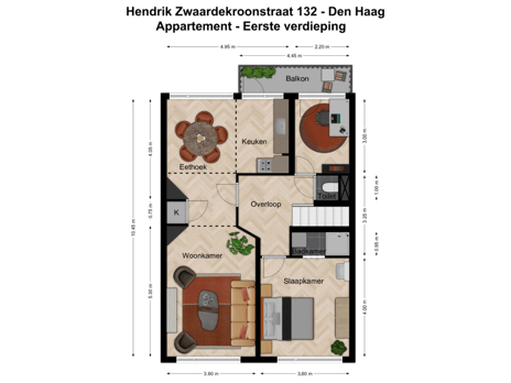 Via de keuken is er toegang tot het ochtendzonnige balkon ca. 4.45 x 1.00.