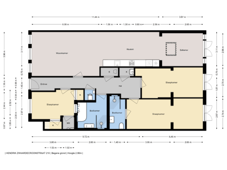 Entree via voordeur naar lange centrale hal, met toegang tot alle overige vertrekken .
