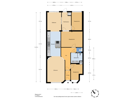 - 74 m² (9,77 meter diep en 7,55 meter breed)