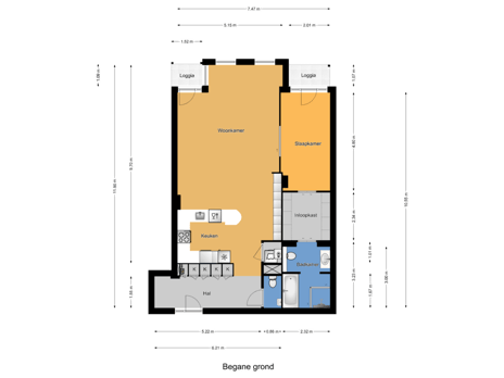 Het appartement is echter gelegen op de parterre. Via een kleine trap bereikt men het appartement met ruime entree met garderobe. Royale woon/eetkamer (ca. 50 m2) met twee kleine balkons aan de voorzijde.