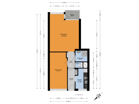 Bij binnenkomst komt u in de hal met meterkast en een separaat toilet met hangend closet. Vanuit de hal zijn alle vertrekken toegankelijk. De lichte woonkamer van 22 m2 is gelegen aan de achterzijde van het appartement en biedt toegang tot het balkon van 3 m2, gesitueerd op het Zuidoosten.