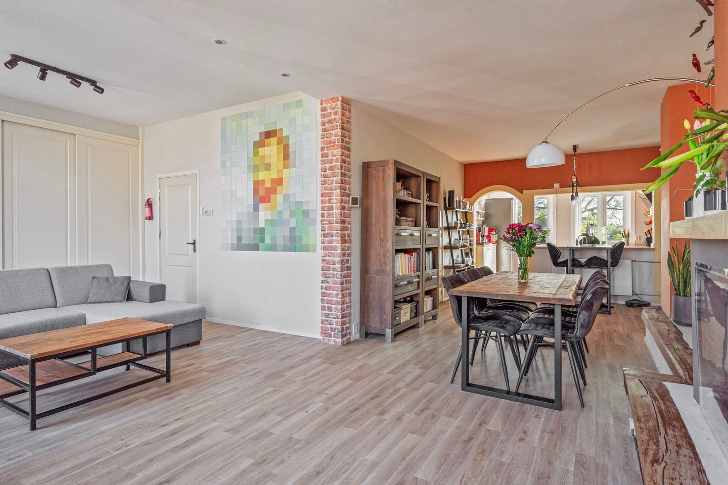 Layout: entrance on the 1st floor. Built-in high cupboard in the hall with plenty of storage space, the possibility to store two bicycles inside, and a cupboard under the stairs. Internal staircase to the 2nd floor. Spacious, playful landing with a toilet. Living/dining room with high ceilings, air conditioning (hot and cold), fireplace, and at the back a semi-open kitchen in an L-shape. The kitchen is equipped with top-quality appliances, including a 5-burner induction hob from AEG with a circular extractor hood from Inventum, a steam oven from Atag, and a dishwasher from Siemens. There is also an extra electrical circuit available for the installation of a Quooker. At the front, the front bedroom has been integrated into the living room, resulting in plenty of light. The bathroom downstairs features a corner shower, bathtub, and sink. The washing machine is neatly concealed in a cupboard in the bathroom, along with the central heating system (2023). The back bedroom downstairs has access to the balcony with morning sun. There is also a spacious built-in wardrobe both next to and above the door of the back bedroom. This room, in combination with the bathroom downstairs, makes this house ideal for accommodating guests or creating a separate living area within a household.