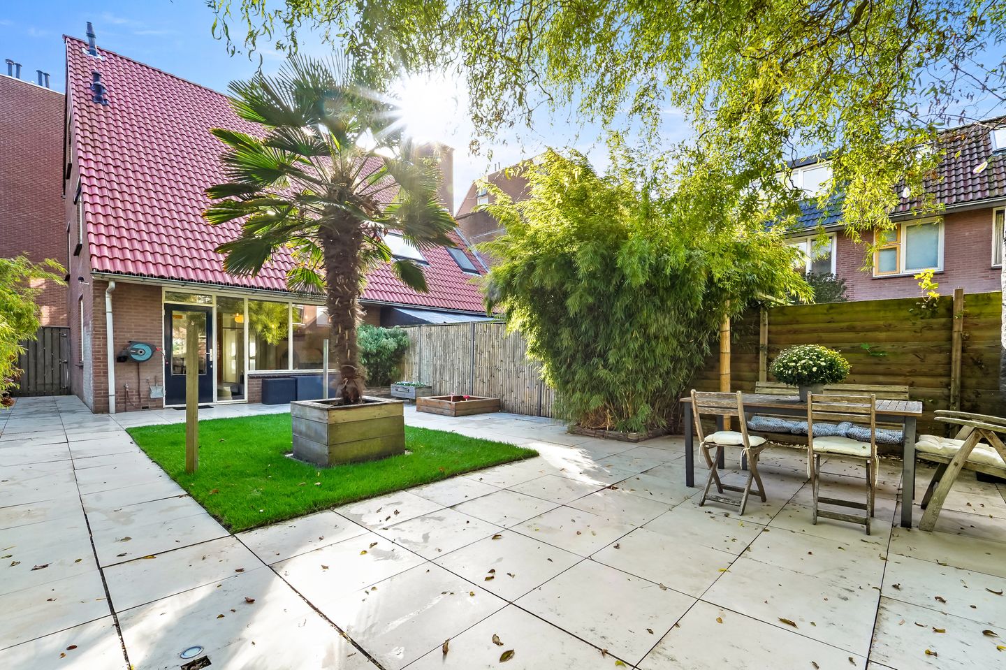 Vanuit de woonkamer is er toegang tot de riante onder architectuur aangelegde achter- en zijtuin (circa 180 m2). De achtertuin heeft een diepte van 12 meter en heeft met een ligging op het noordwesten de gehele dag zon! Aan de zijkant van de woning loopt tot aan het eind van de achtertuin nog een lange groenstrook welke ook bij de woning hoort. Op deze strook vindt u onder andere de speeltuin en is er de mogelijkheid om lekker aan het water te zitten. De tuin is ook via een achterom bereikbaar.