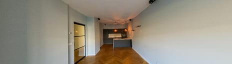 Spacious entrance hall with a luxurious herringbone floor that continues throughout the entire home. From the hall, you have access to all rooms.